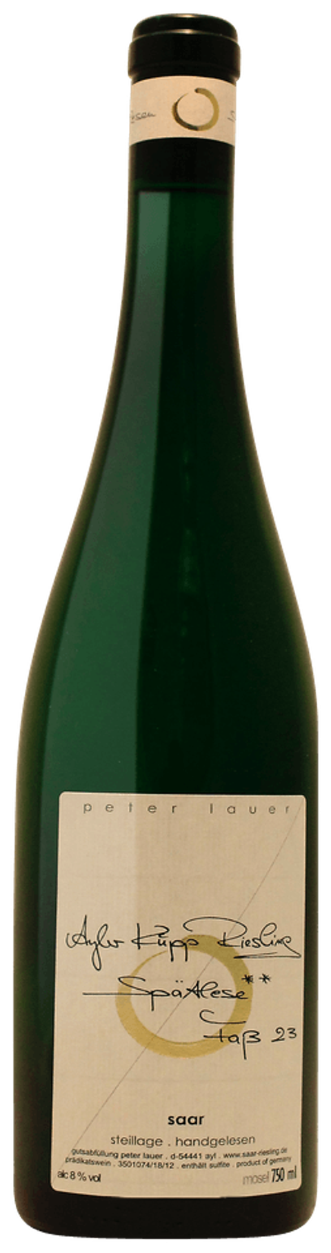 The Faß 23 Ayler Kupp Spätlese Riesling 2016 from Peter Lauer is a stunning Saar Riesling that beautifully balances sweetness, minerality, and finesse. Aromas of lime zest, white peach, and honey unfold alongside notes of slate and jasmine. The palate dances between bright acidity and ripe fruit, delivering remarkable precision and length. This Spätlese showcases the purity and tension that define Peter Lauer’s artisanal craftsmanship and the Ayler Kupp’s steep slate terroir.